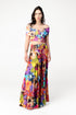 Step out of the ordinary and into a world of color in this pleated maxi skirt. Featuring a floral print folded into elegant small pleats, it is a sculptural work of wearable art. With a floor-grazing hem, the skirt appears to glide as you walk. The shirred waistband ensures a stretchy, yet snug fit for everyone.