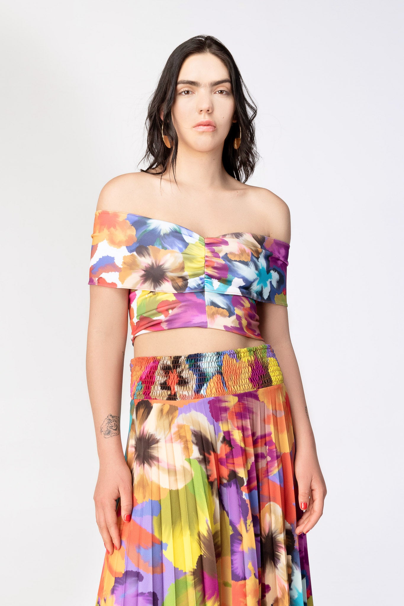 Adjustable neckline | Gathered detail on the chest | Crop-top style