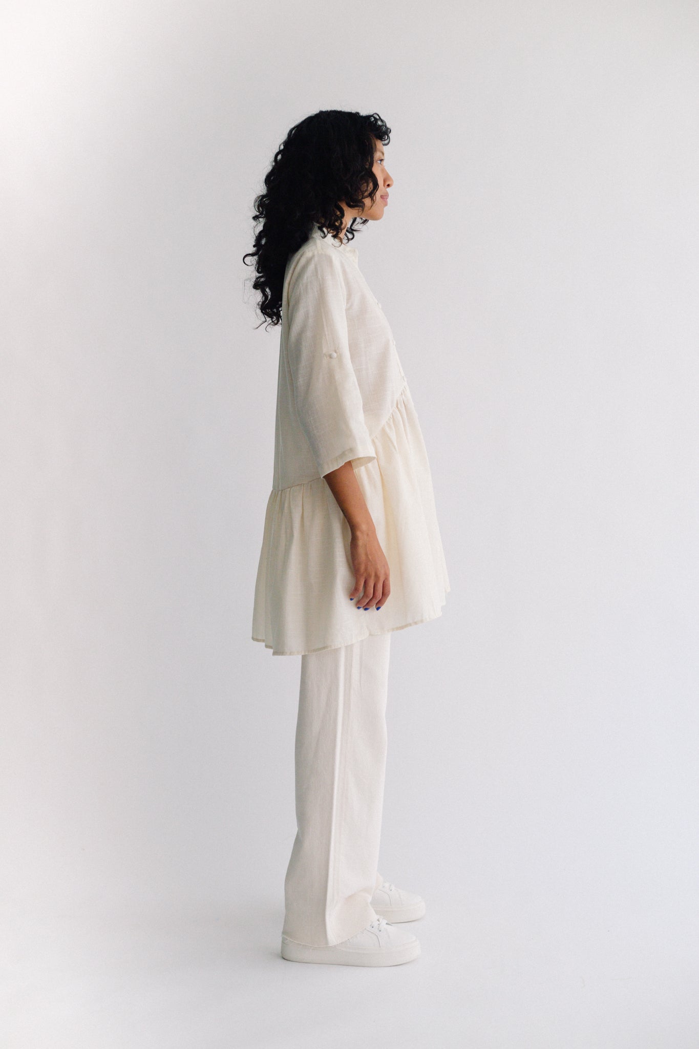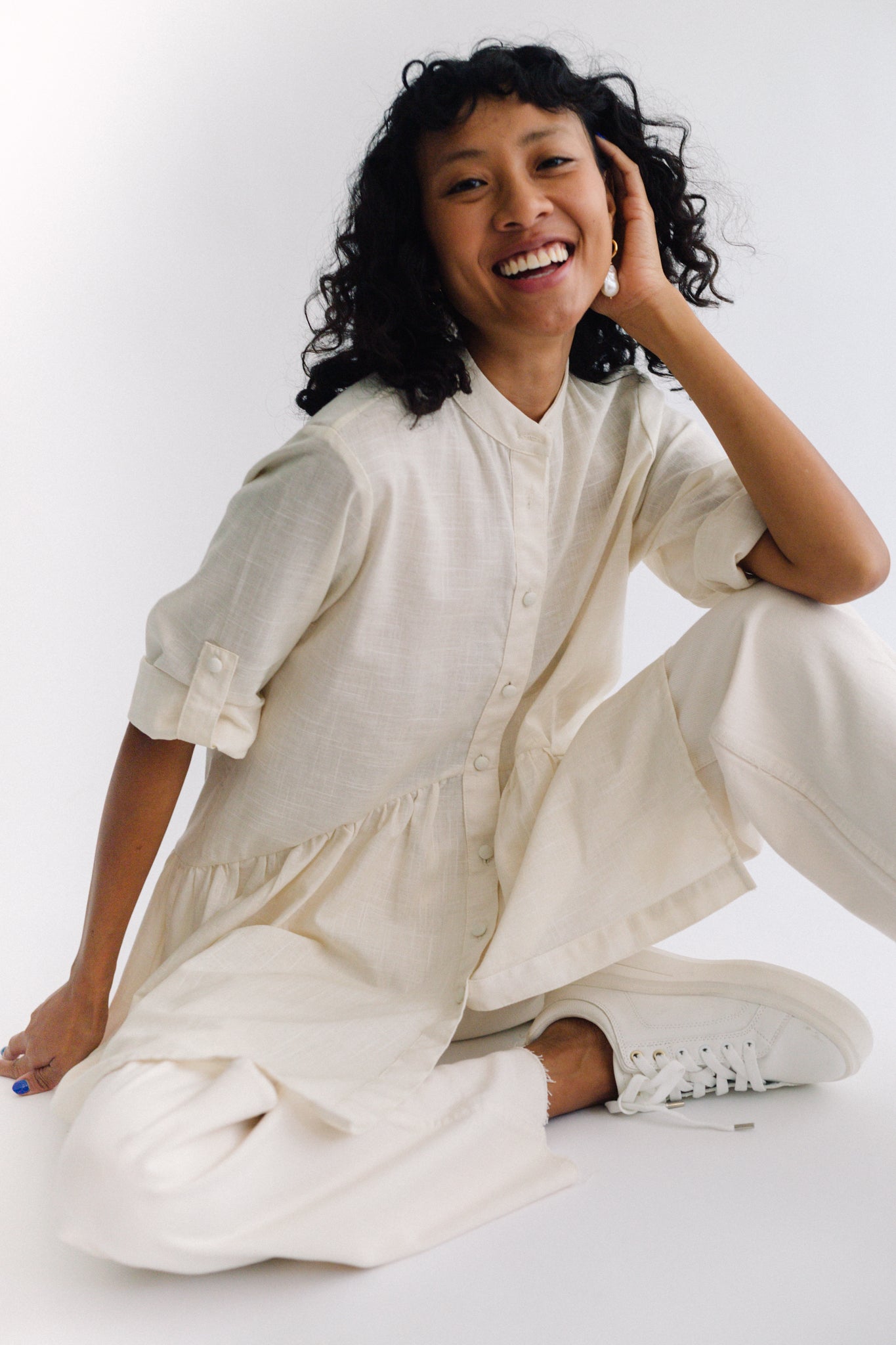 Deliciosamente aireada y libre de fluir, nuestra camisa Maura está hecha para soñadores. Ligero en la piel e incluso más claro en el corazón, cambia suavemente de una estación a otra con un remolino de silueta similar a un vestido. Confeccionado conscientemente en suave algodón con imitación de lino, será tu nuevo favorito para todos los hermosos momentos de la vida.
