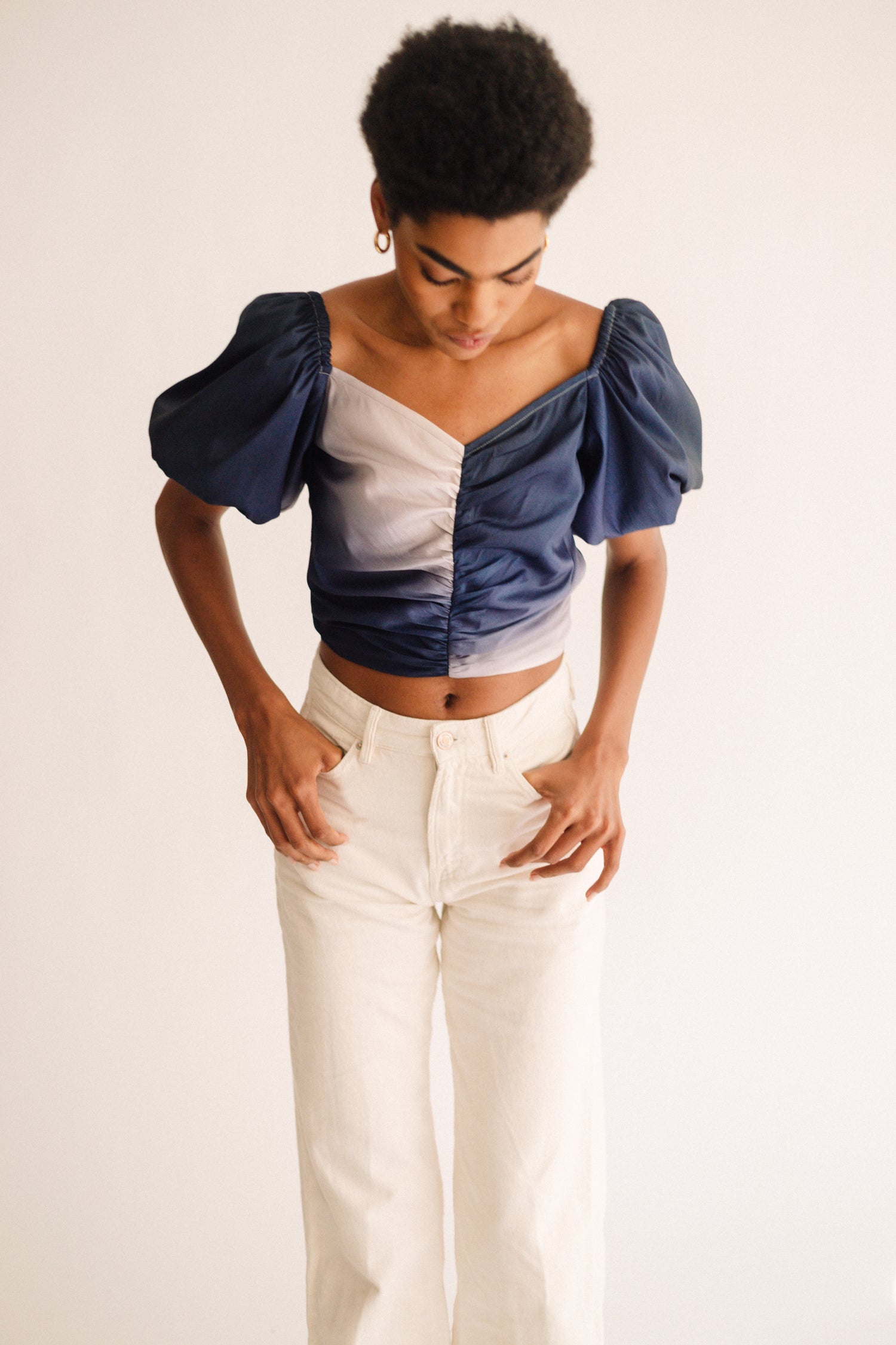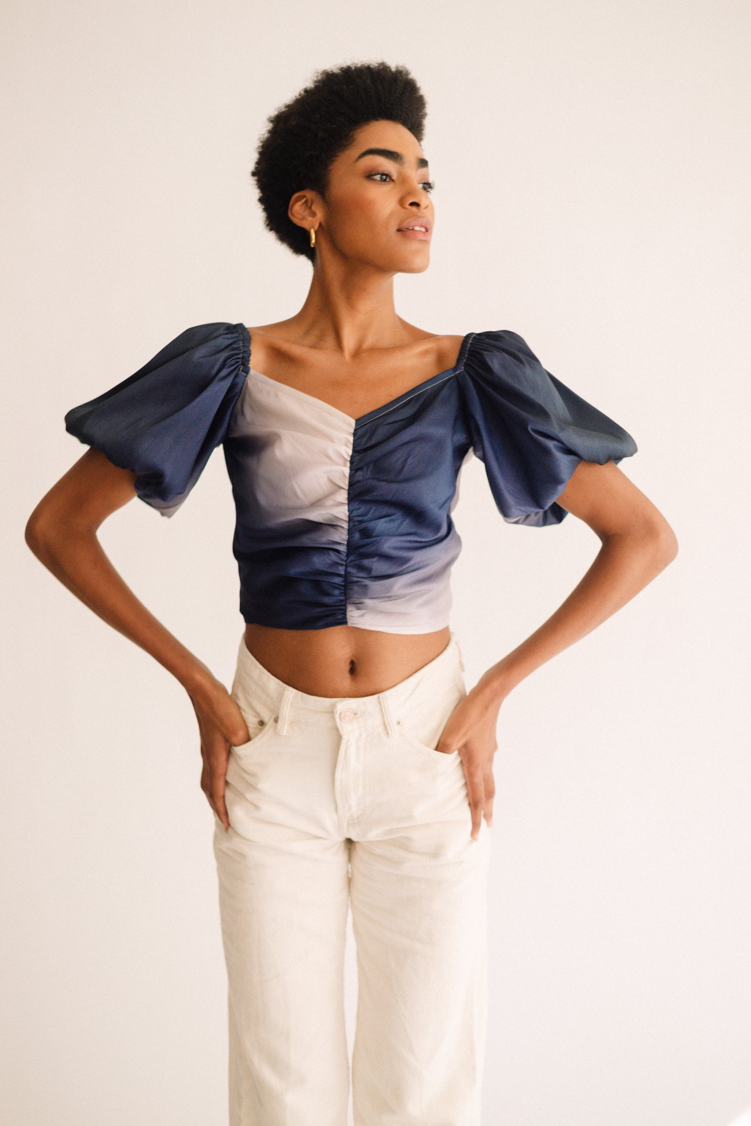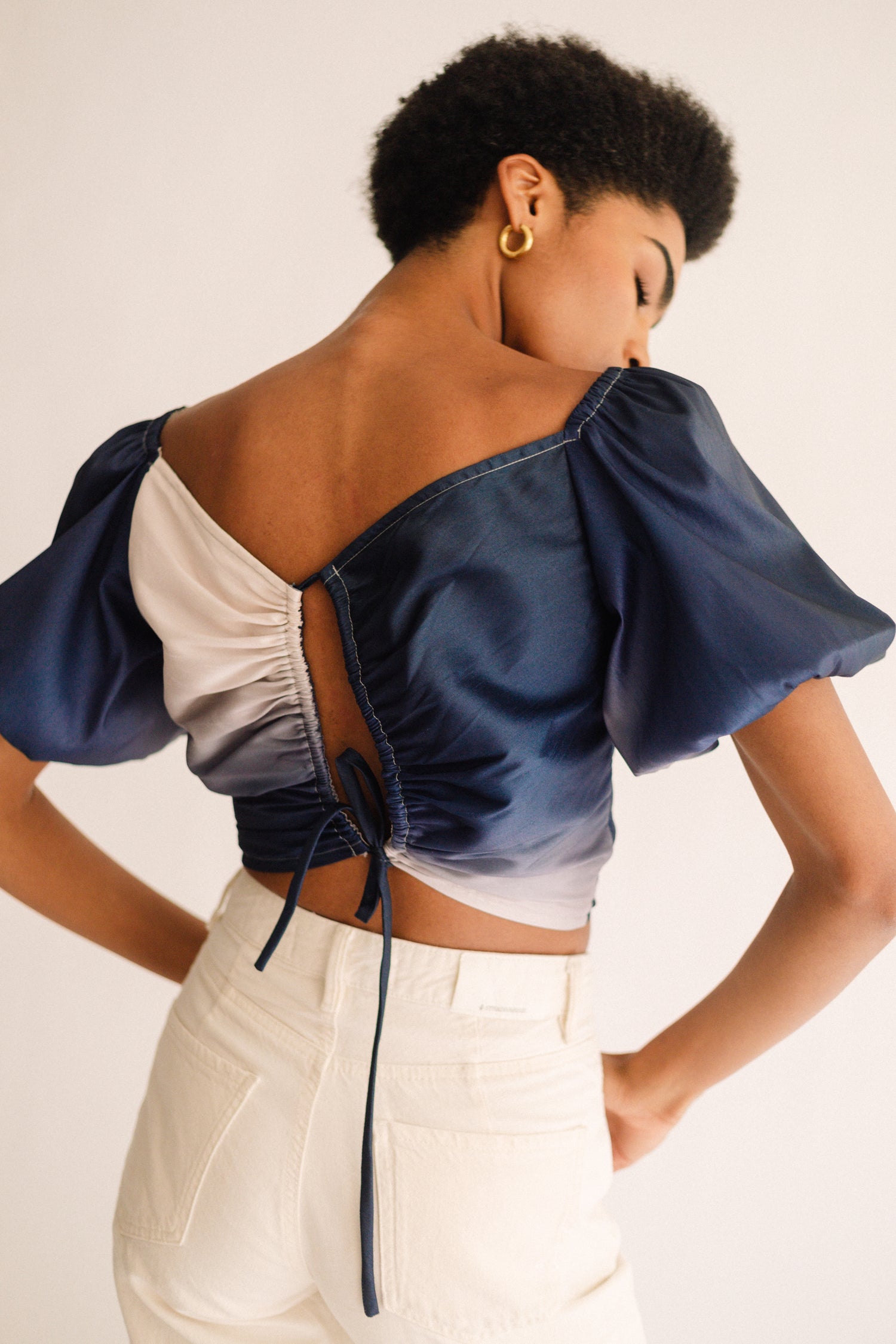 Una visión de degradado, esta belleza fruncida es cualquier cosa menos una camiseta ordinaria. Diseñado para realzar cualquier atuendo, presenta un hermoso corte ovalado en la parte posterior y un fruncido ajustable en la parte delantera. Úsalo como un estilo más ceñido al cuerpo, o déjalo más suelto para una comodidad informal en el día a día.