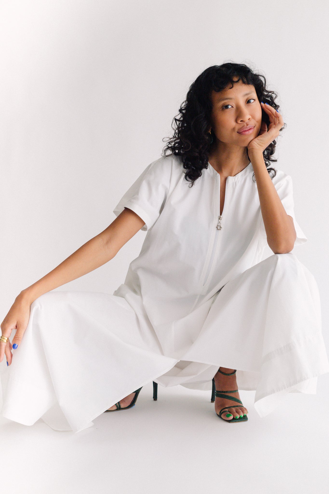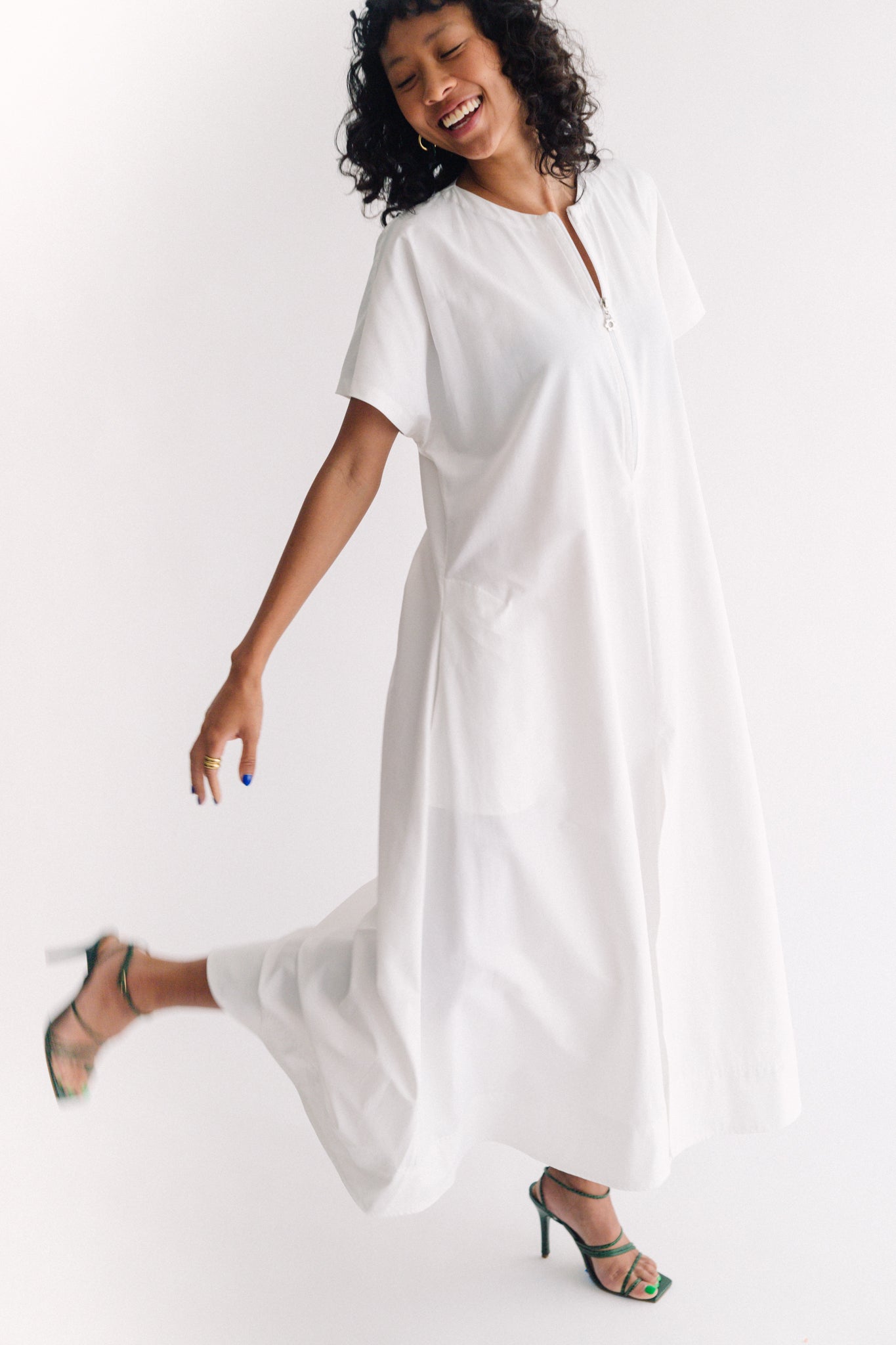 Libertad, creatividad, comodidad. Cierra los ojos e imagina un vestido que se mece con el viento y baila con los árboles. Con un drapeado suelto que ofrece un potencial de movimiento infinito, nuestro vestido Diana es una expresión artística de puro optimismo. Deja que su forma pura te inspire a sentir algo nuevo.