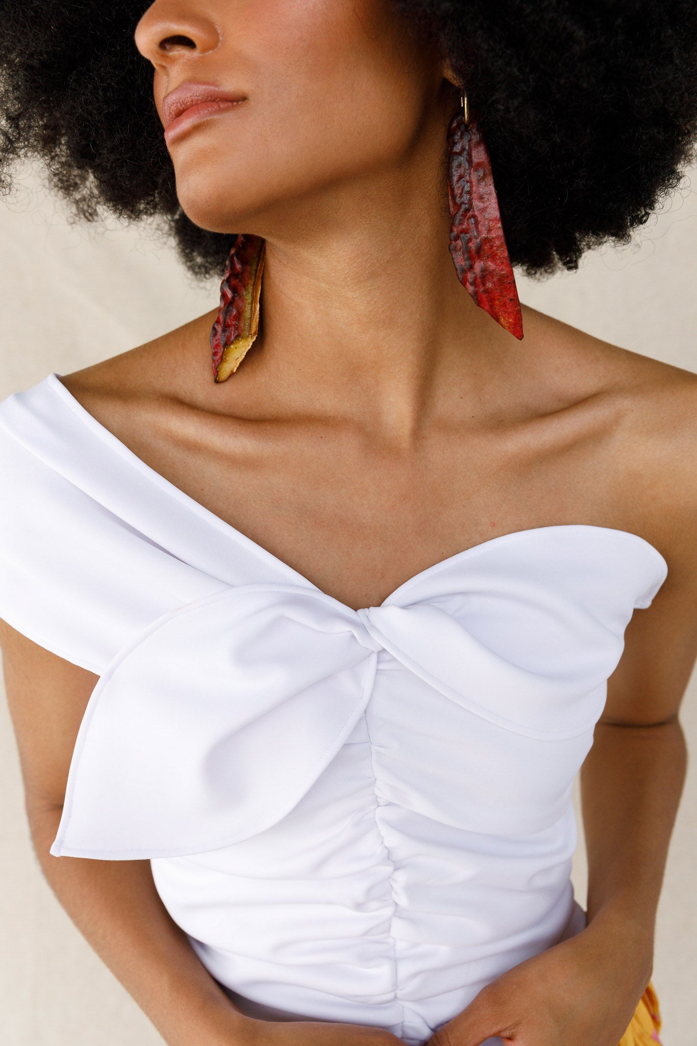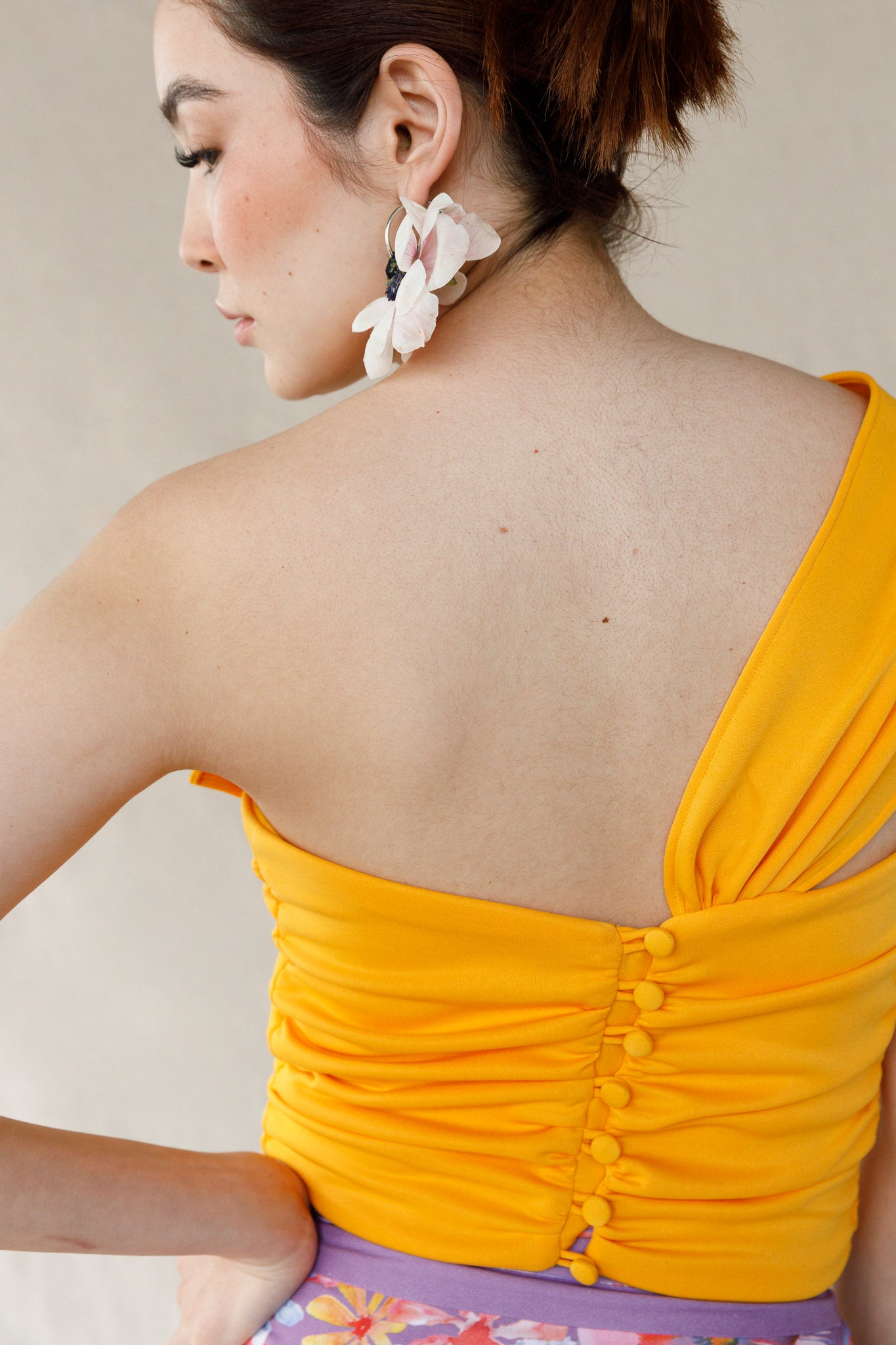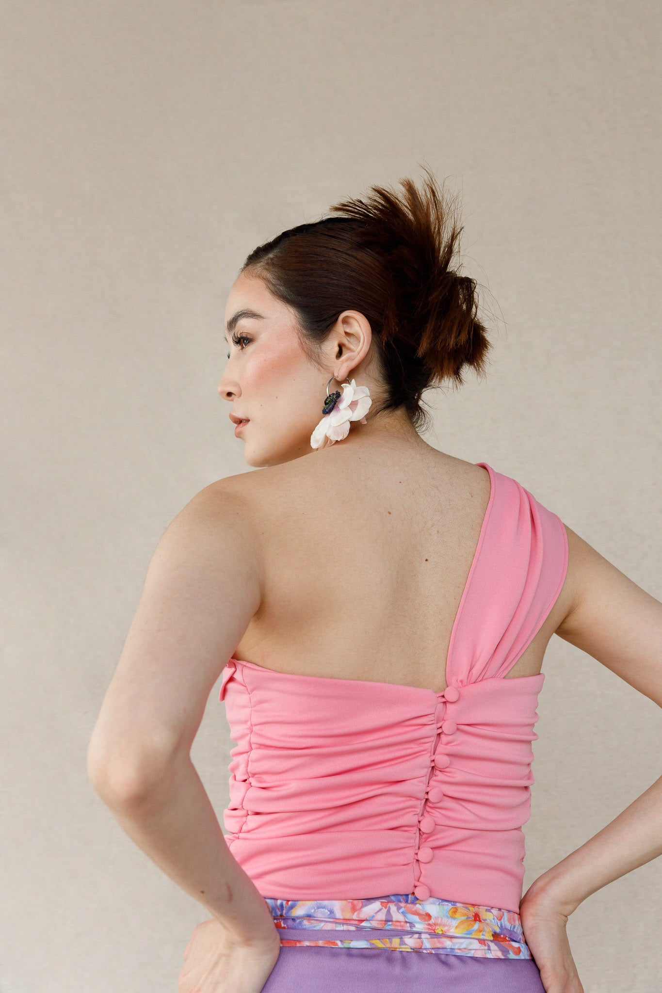 Con un gran detalle similar a un lazo en la parte delantera y un rastro de delicados botones en la parte posterior, este top femenino está diseñado para encantar. Utilizando una técnica fruncida, la tela abraza la figura de una manera que favorece a todos los tipos de cuerpo. Vístelo con una falda larga larga o con un par de jeans de cintura alta.