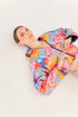 Soft or loud - let your voice be heard. This short puffy reversible jacket keeps you warm while making sure you stand out. One side features an ocean deep blue , while the other is printed with a colorful floral and fruit motif. The small details like the trims on the cuffs, front and back make this jacket the perfect combination of function and form. Complete the look with our Clarita Pant or our Serene pleated Skirt