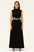 • High-waisted maxi skirt with gathered ½ waistline + flat front