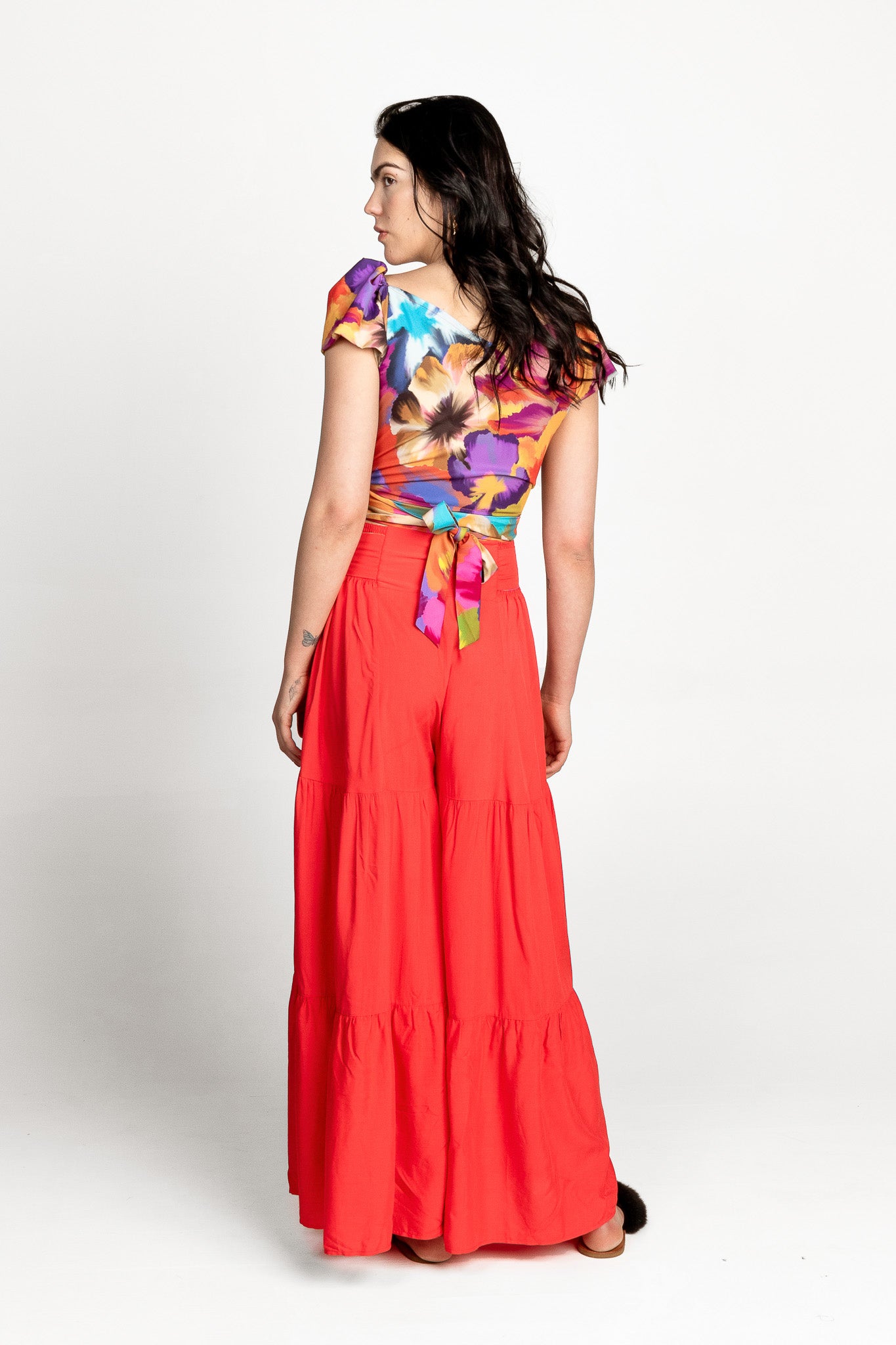 Estos pantalones anchos se convertirán en tus nuevos favoritos cuando tengas ganas de sobresalir. Con características llamativas como un dobladillo que roza el piso, una silueta escalonada, un delicado volante lateral y un cinturón de lazo en contraste, son halagadores y únicos, lo que te hace sentir poderoso mientras conquistas el día. La cintura de talle alto presenta detalles fruncidos que te brindan el ajuste perfecto.