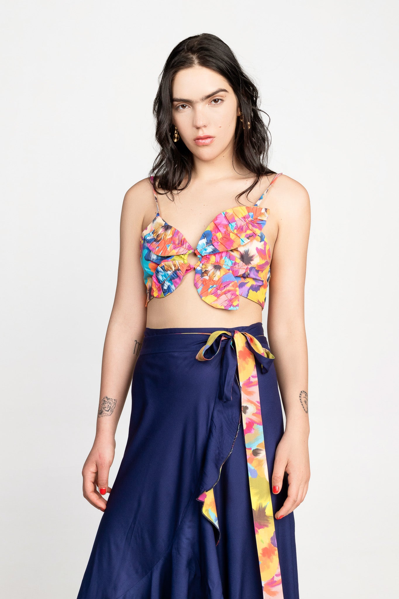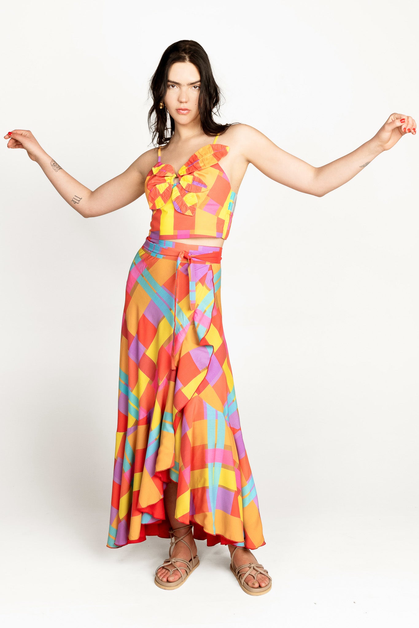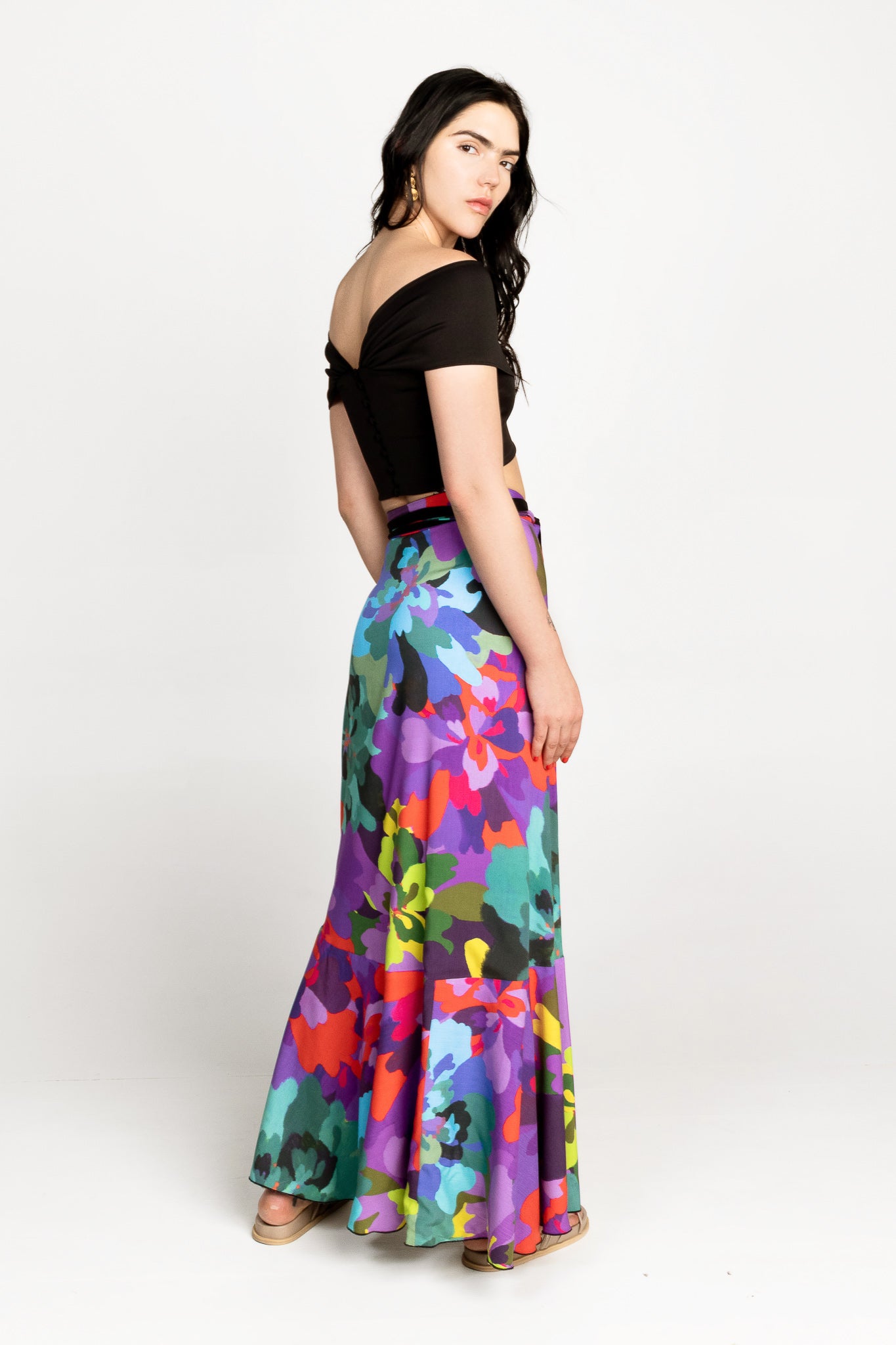 Femenina y divertida a partes iguales, esta falda larga está hecha para dar vueltas. Su carácter reversible te permite elegir entre caprichosos estampados florales y frutales o un color sólido según tu estado de ánimo. El lazo envolvente suave en la cintura proporciona un ajuste ajustable para que siempre se sienta cómodo y seguro. Cualquiera que sea la forma en que lo use, ¡está garantizado que llamará la atención!