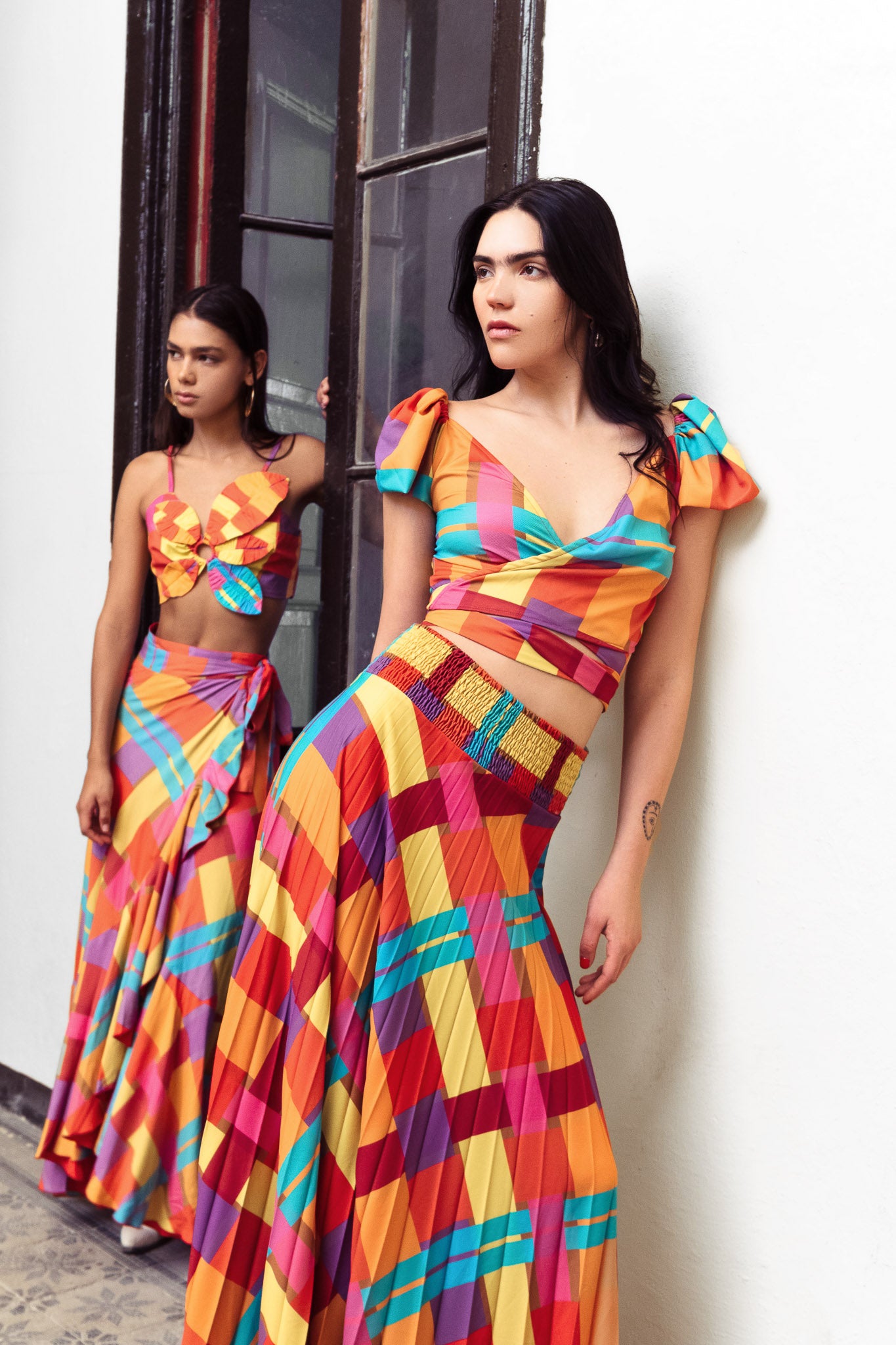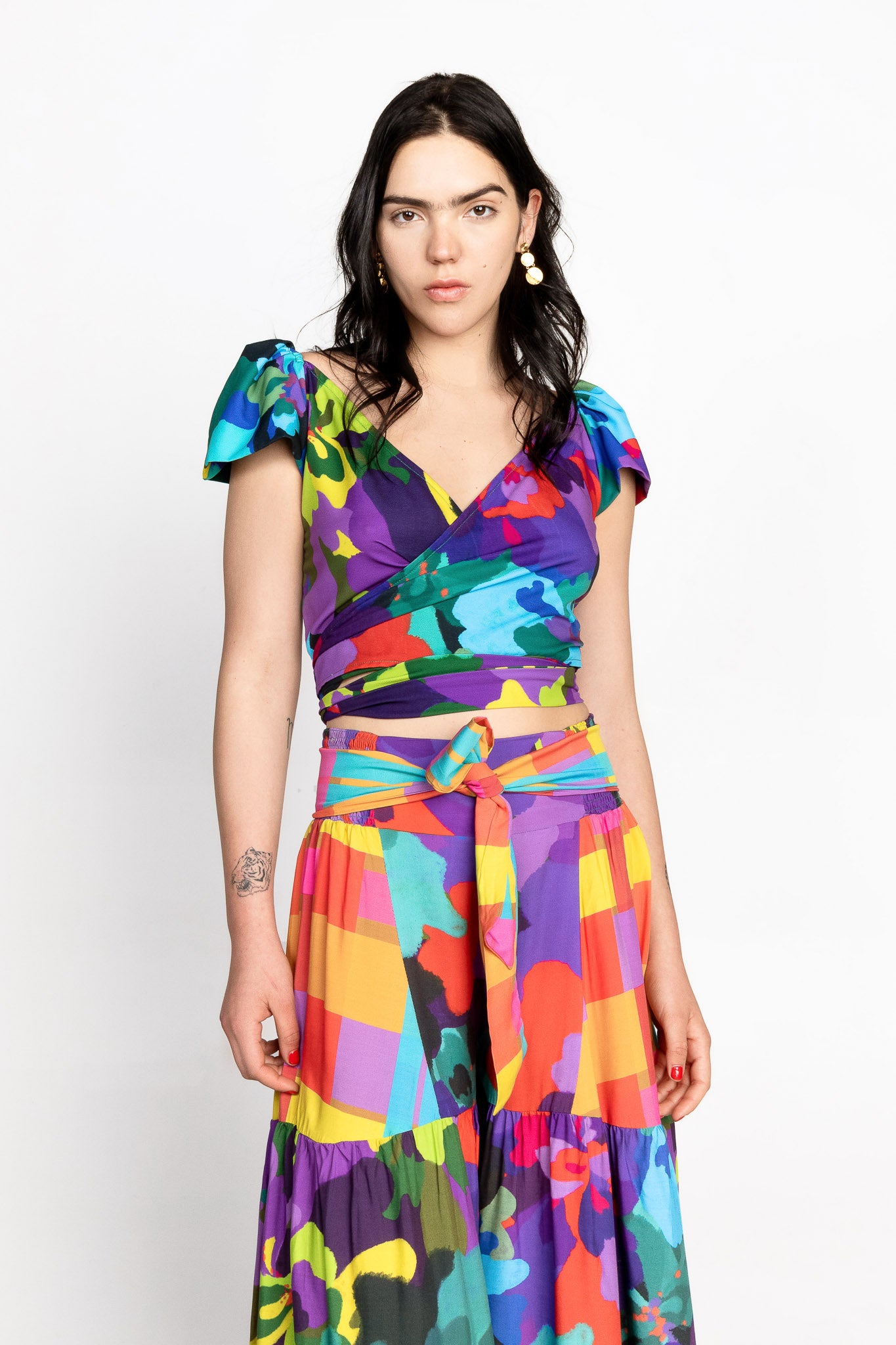 Diseñada desde el corazón, esta blusa presenta un estampado floral pictórico y mangas de mariposa femeninas. Al funcionar como una envoltura, le permite ajustar la tela a su cuerpo, brindándole la libertad y flexibilidad para usarla como desee. Completa el look con nuestra Falda Plisada Samay.