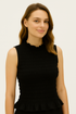 The Miranda Blouse is a timeless piece designed to embrace the body with elegance and comfort. Made from soft cotton fabric, it features delicate ruching throughout, creating a texture that adapts naturally to your shape. Its high bandeja-style neckline, formed by the gentle ruffle, adds a romantic and refined touch.