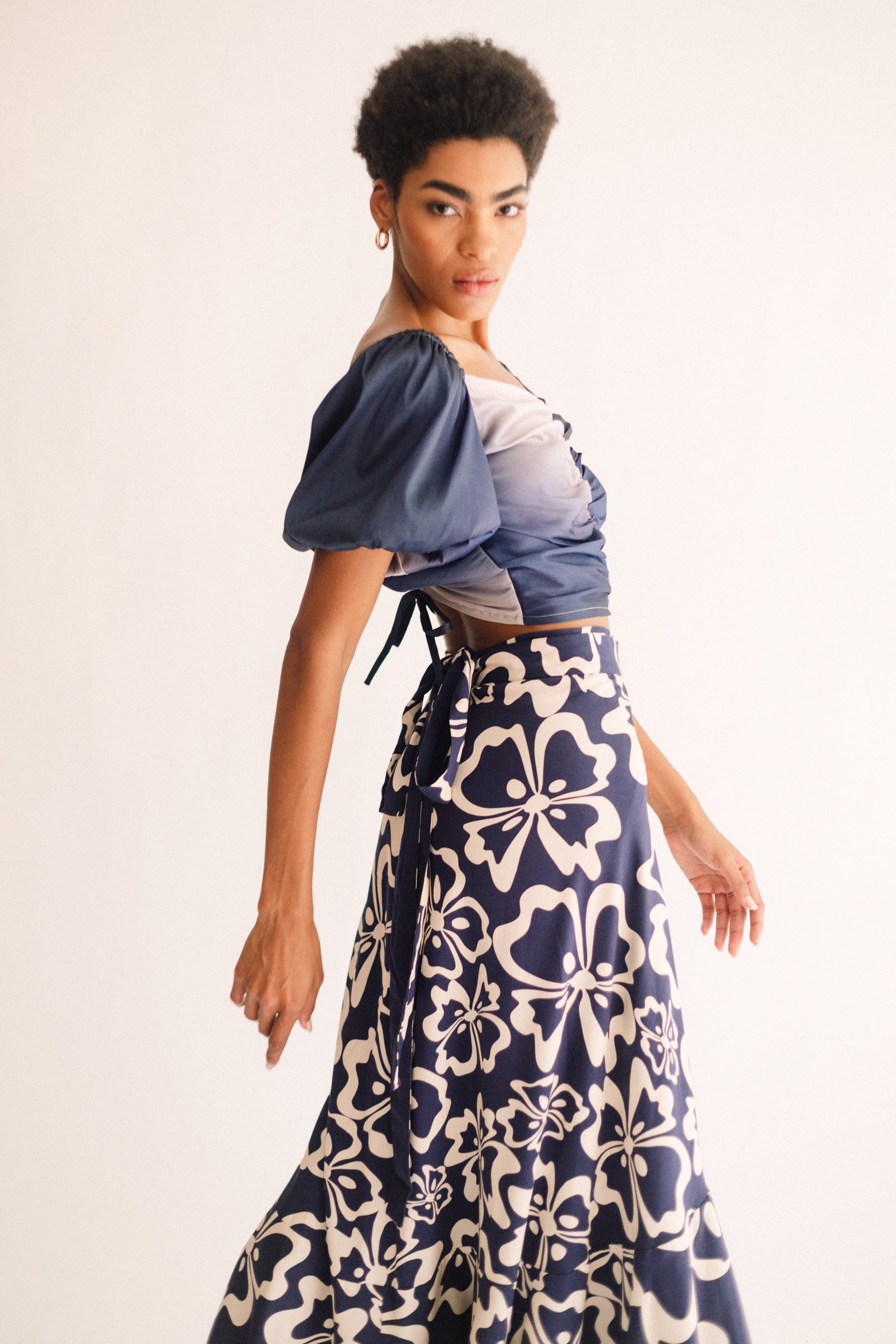 Tranquila, sofisticada y atemporal, esta maxifalda envolvente fluida ofrece total creatividad y control sobre cómo la usas. “Veda” se traduce como conocimiento en sánscrito, y esta falda es un recordatorio de lo importante que es para ti expresar tu visión con el mundo. Tome el lado floral para dar un giro, o use el estampado sólido si se siente más tenue. Es un tributo a las infinitas posibilidades que te esperan en tu viaje.