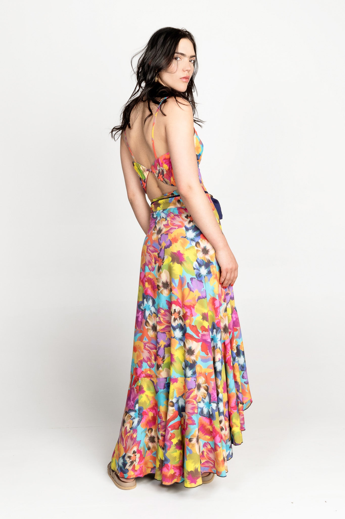 Equal parts feminine and fun, this maxi skirt is made for twirling. Its reversible nature allows you to choose between whimsical floral and fruit prints or a solid color depending on your mood. The soft wrap tie at the waist provides an adjustable fit so you always feel comfortable and confident. Whichever way you wear it, it is guaranteed to turn heads!